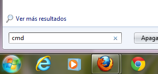 2-En la ventana de búsqueda escriba: cmd y haga clic en Intro