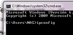 A continuación, con el comando ipconfig , el sistema nos devolverá el valor de la dirección IP de nuestro ordenador.