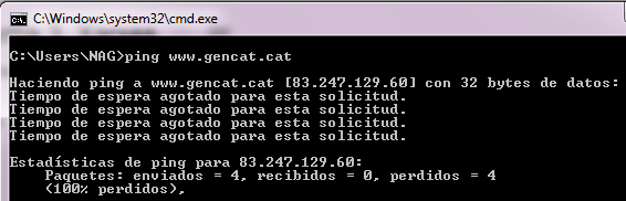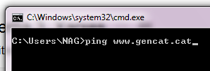 Podemos averiguar la dirección IP de un servidor? Sí es posible pero no siempre es inmediato. Vemos el proceso. Abra una ventana de MS-DOS como se ha visto en el ejemplo anterior y utilice el comando ping aplicado a la web de la Generalidad de Cataluña.